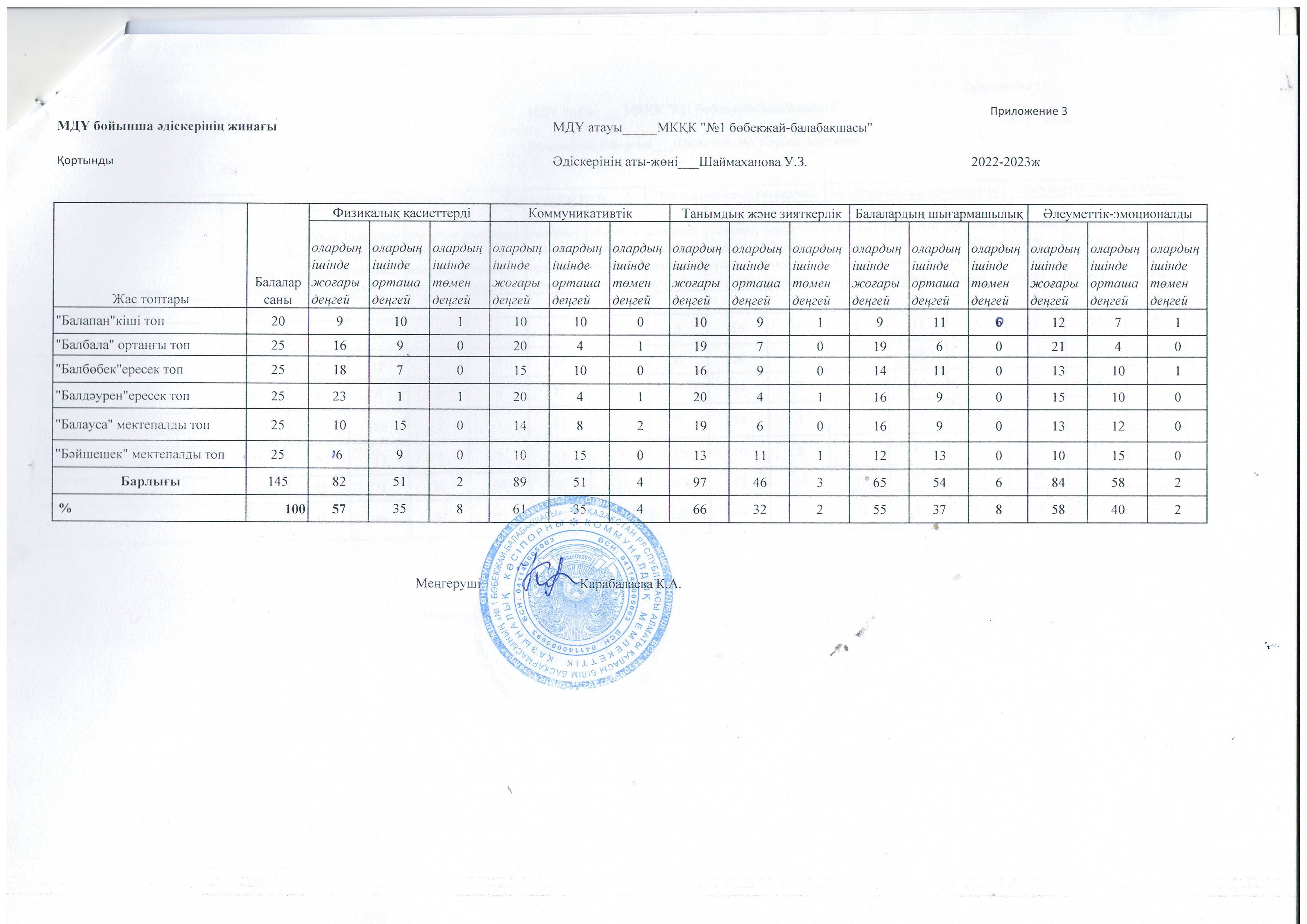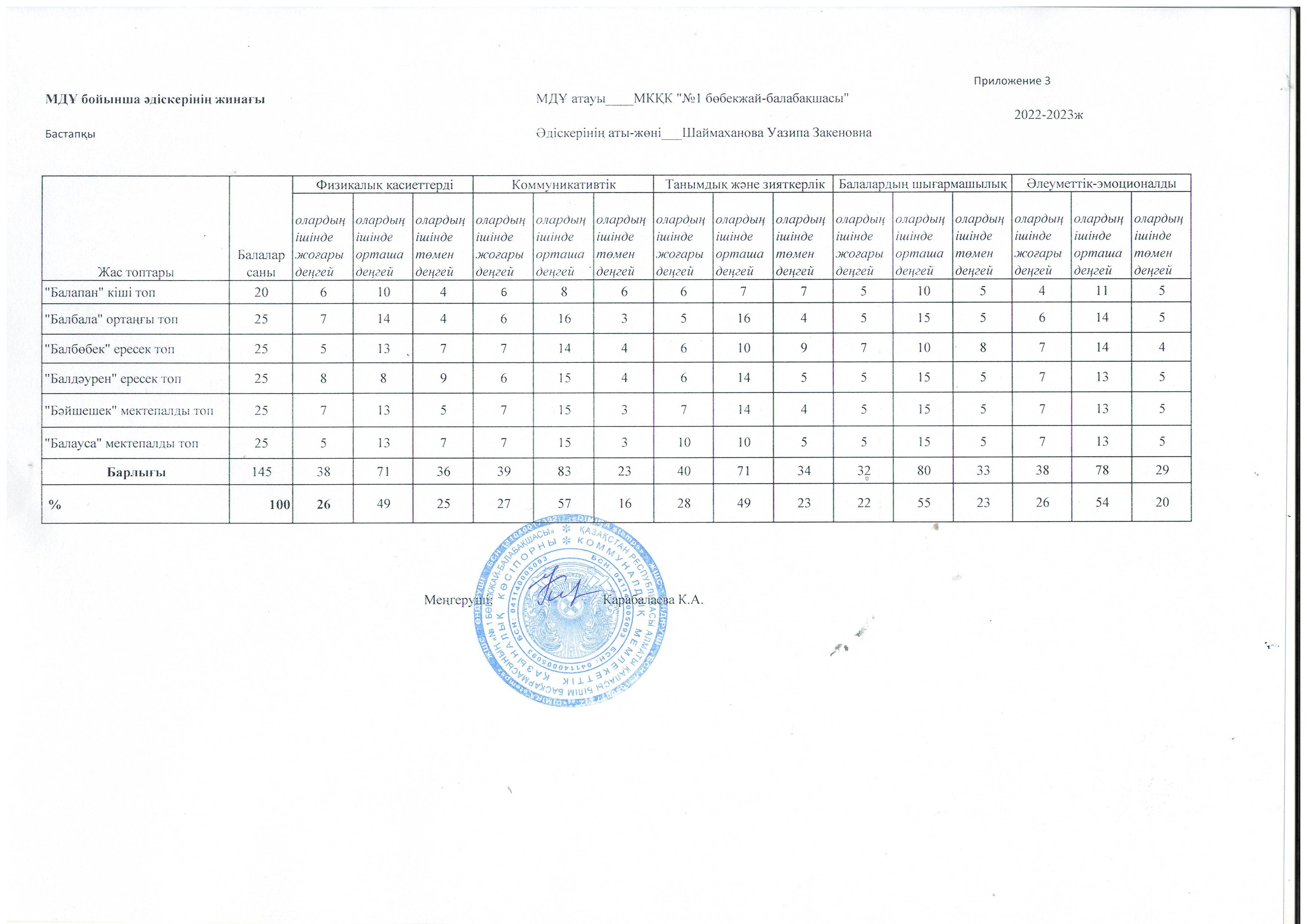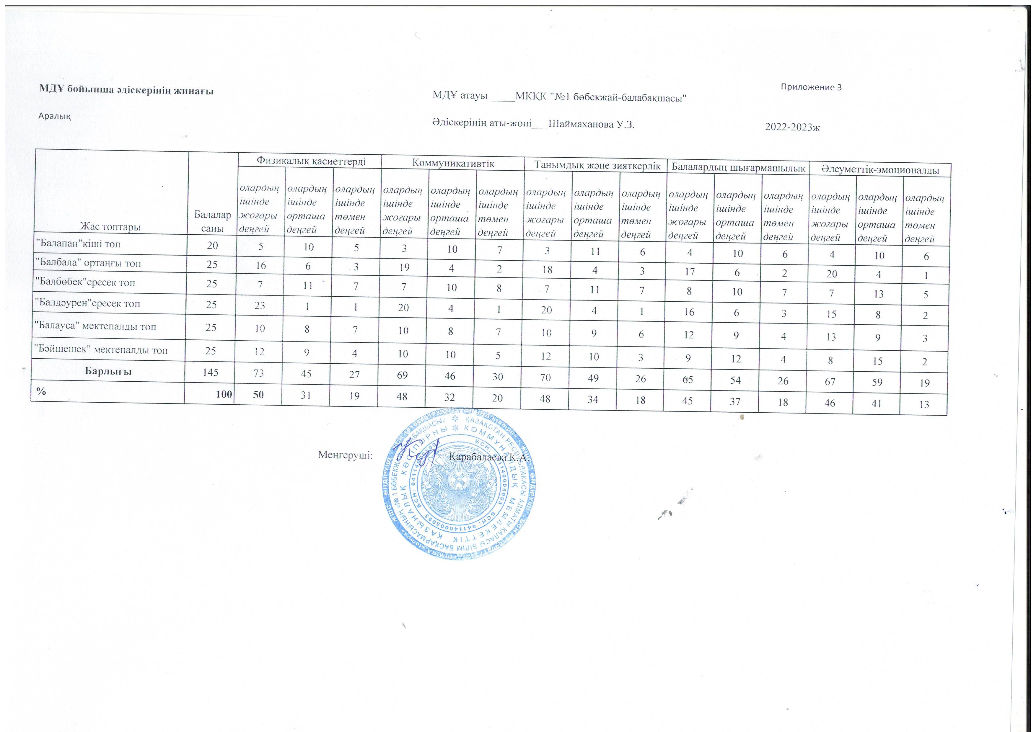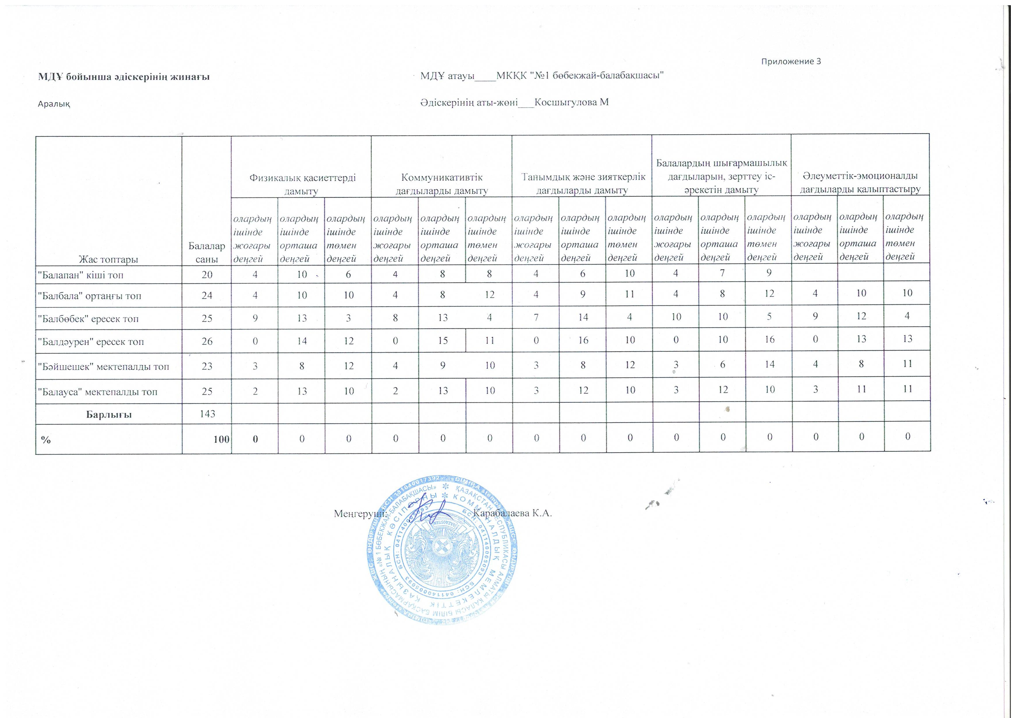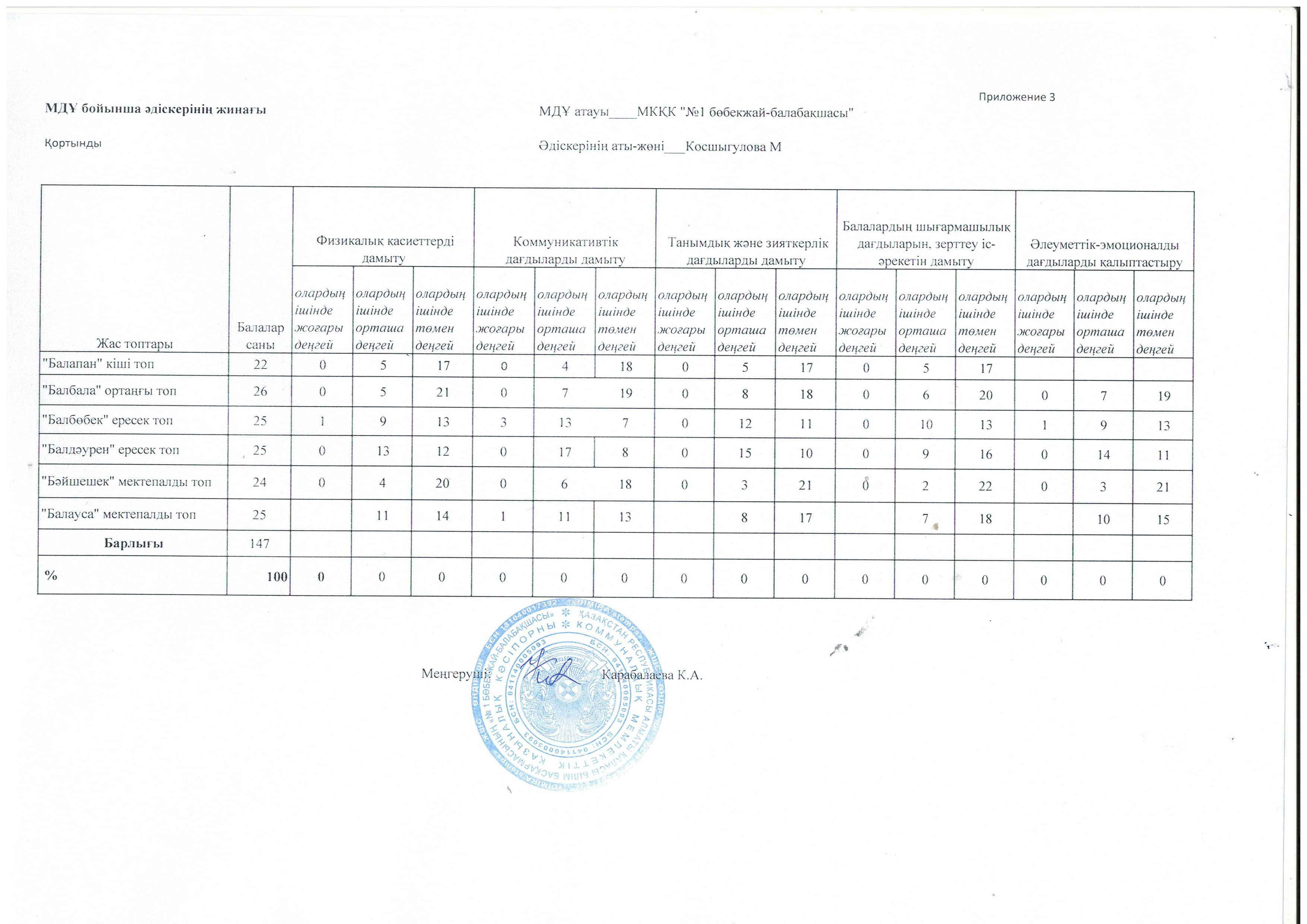Білім бағалау » ГККП "Ясли-сад №1". Алатауский район