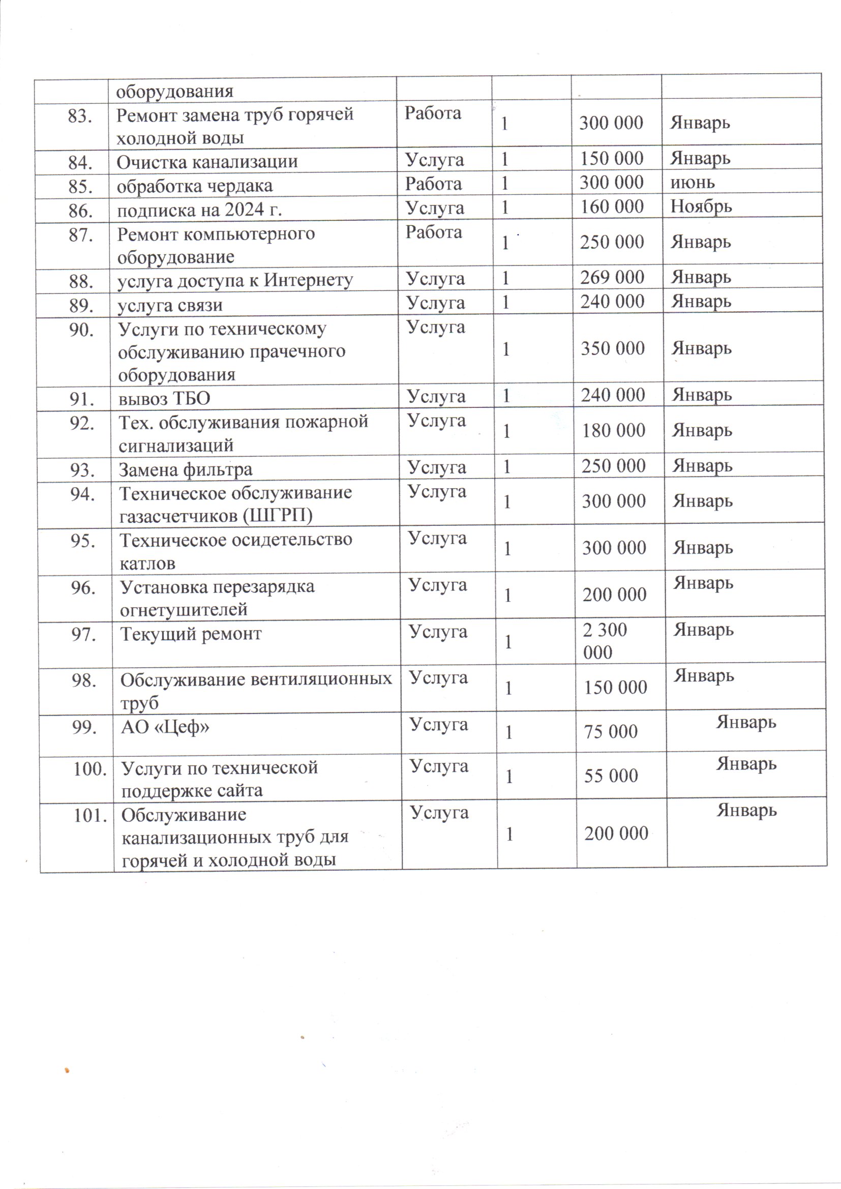Сатып алу жоспары 2024 » ГККП "Ясли-сад №1". Алатауский район
