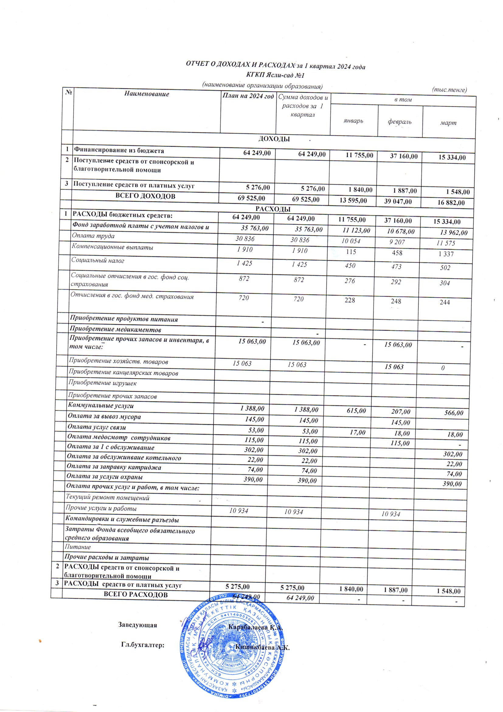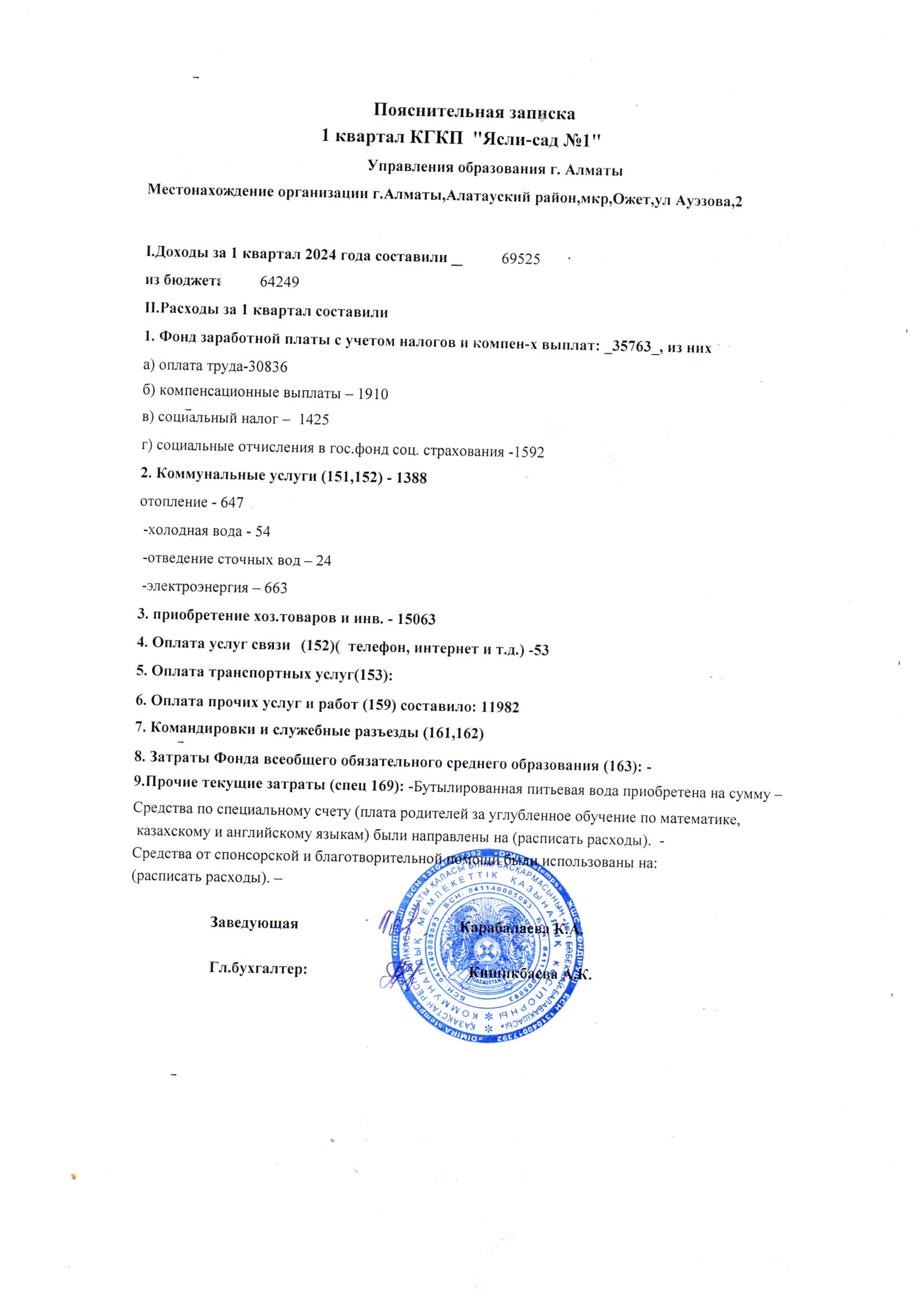 Кіріс-шығыс есебі 2024 жыл » ГККП "Ясли-сад №1". Алатауский район