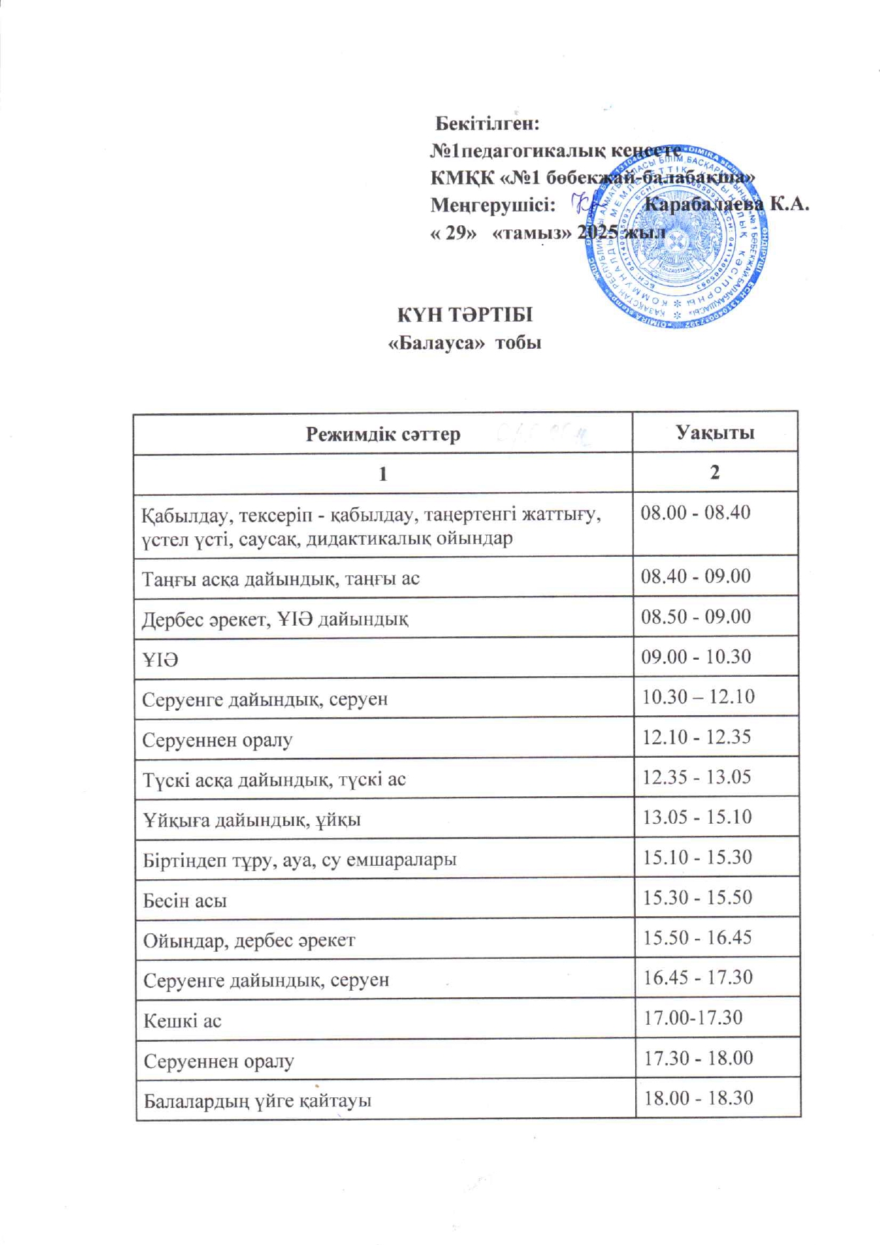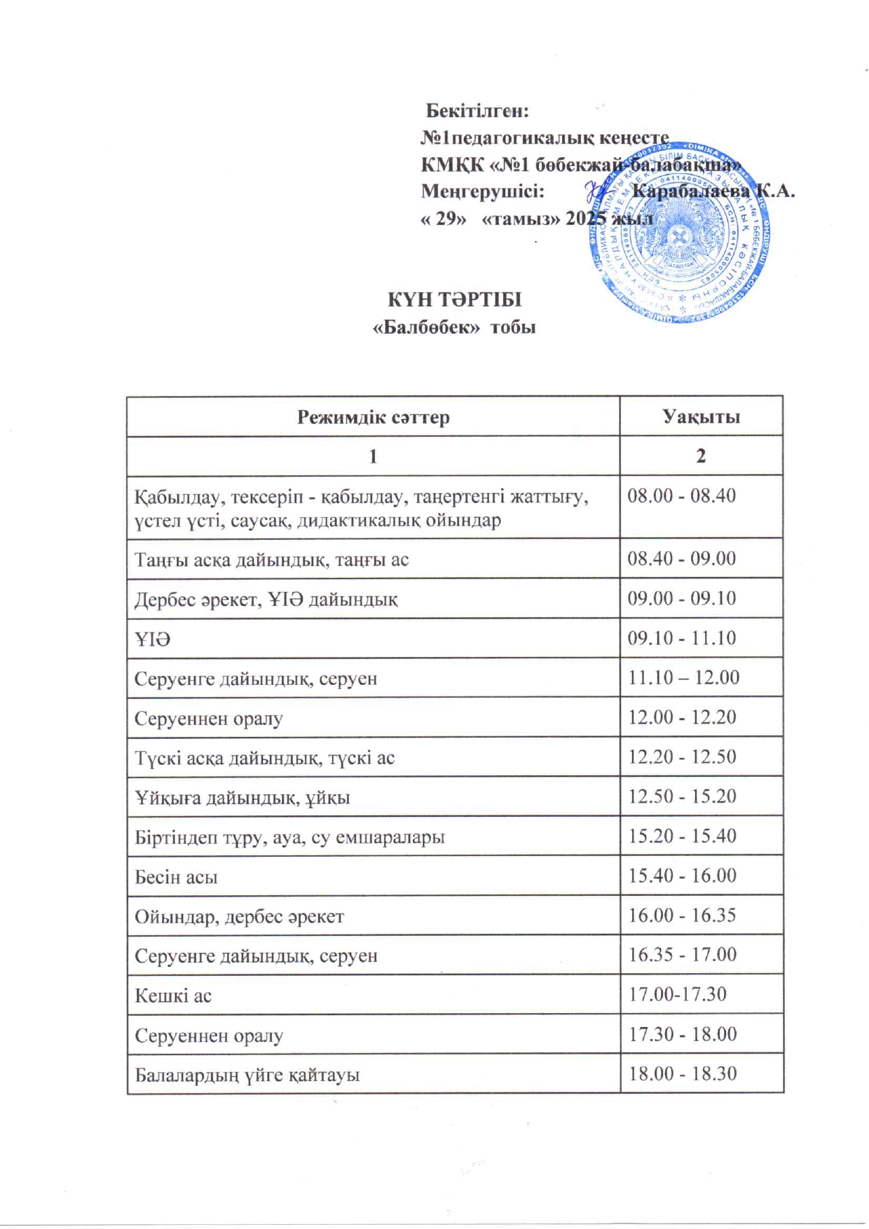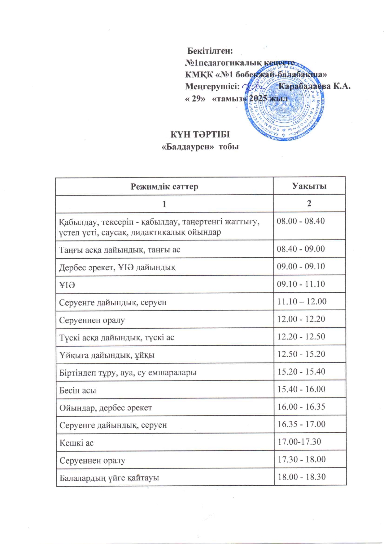 Күн тәртібі 2025-2026 ж » ГККП "Ясли-сад №1". Алатауский район