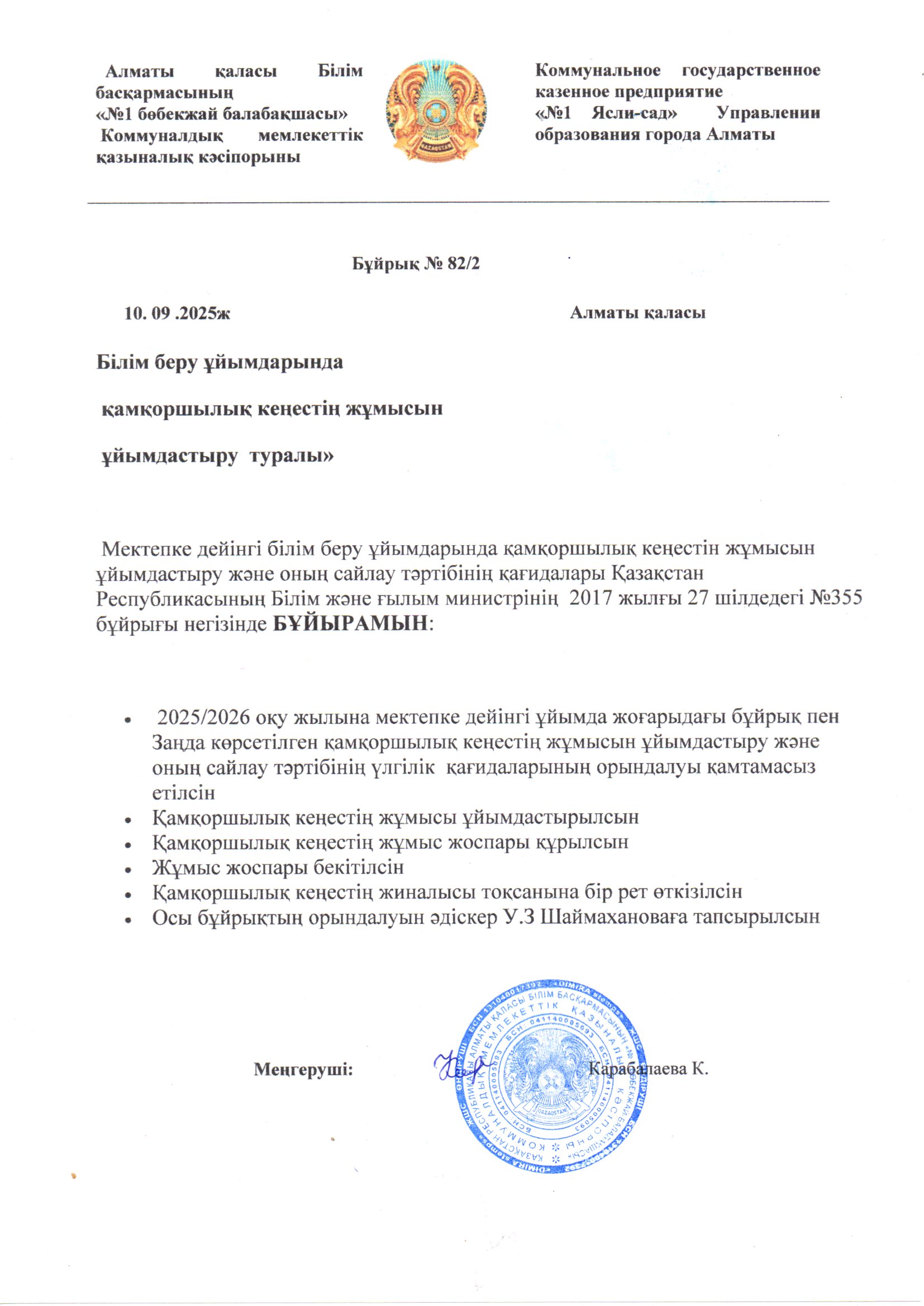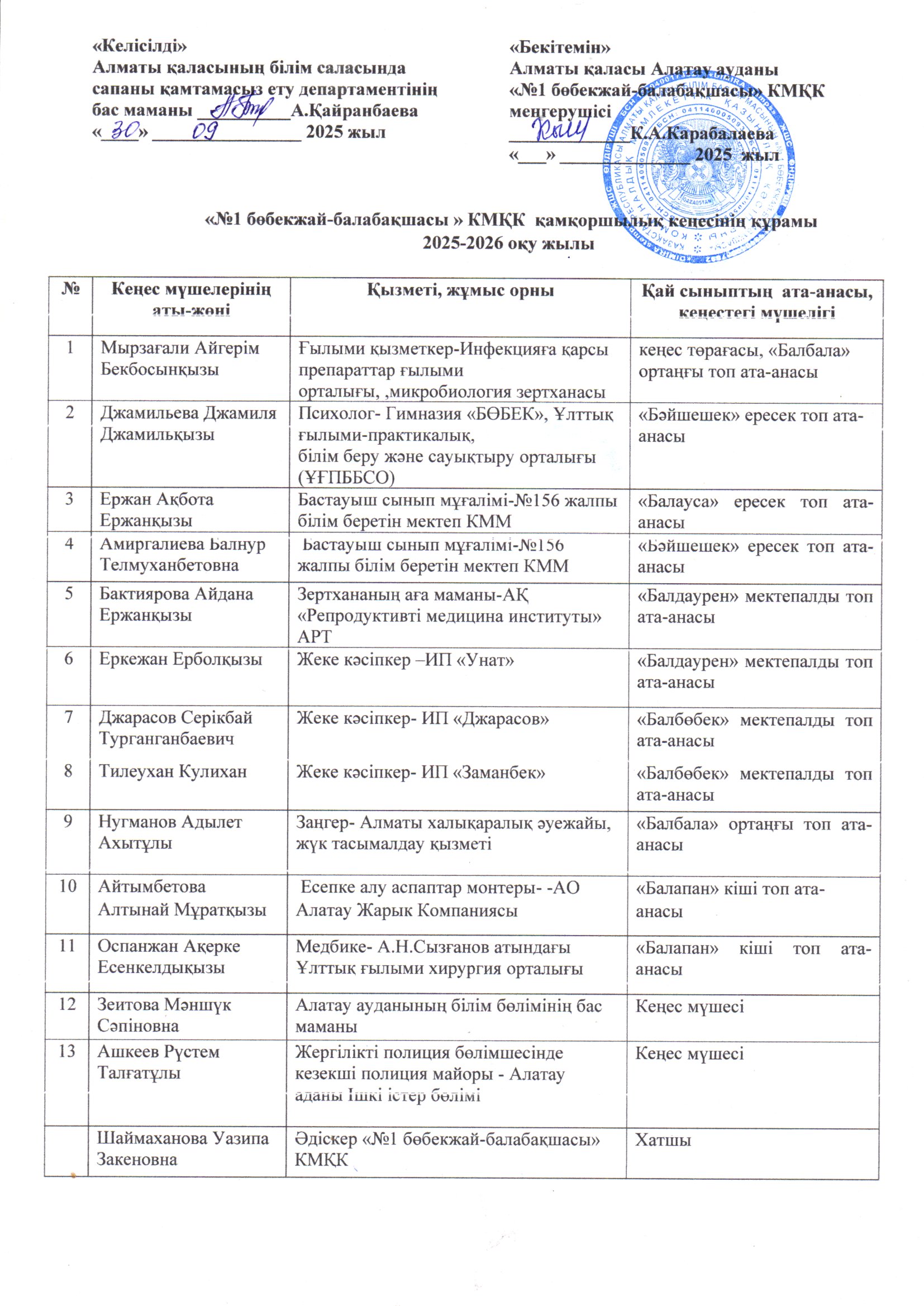 Қамқоршылық кеңесін құру 2025-2026ж » ГККП "Ясли-сад №1". Алатауский район