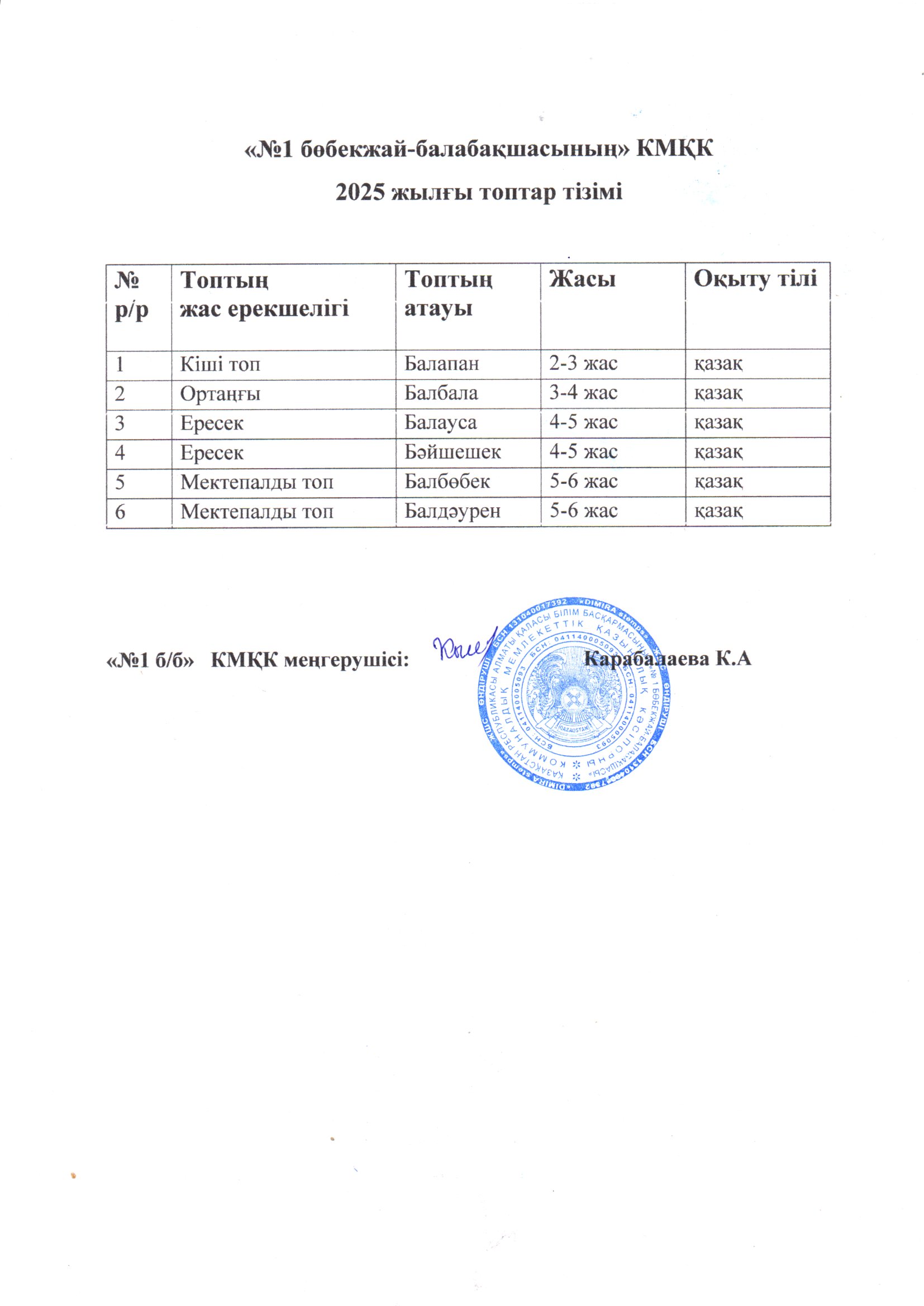 «№1 бөбекжай-балабақшасы»